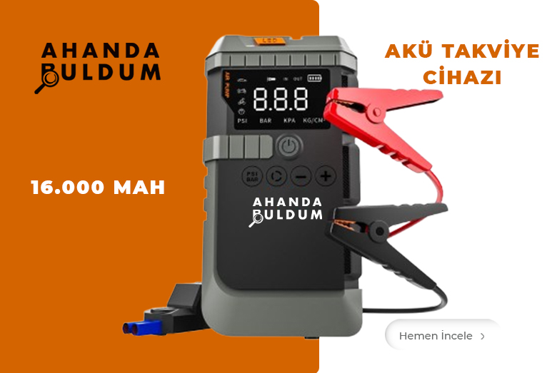 Yüksek Akım Korumalı 16000mAh Akü Takviye Cihazı + 150 PSI Dijital Hava Kompresörü 4'ü 1 Arada