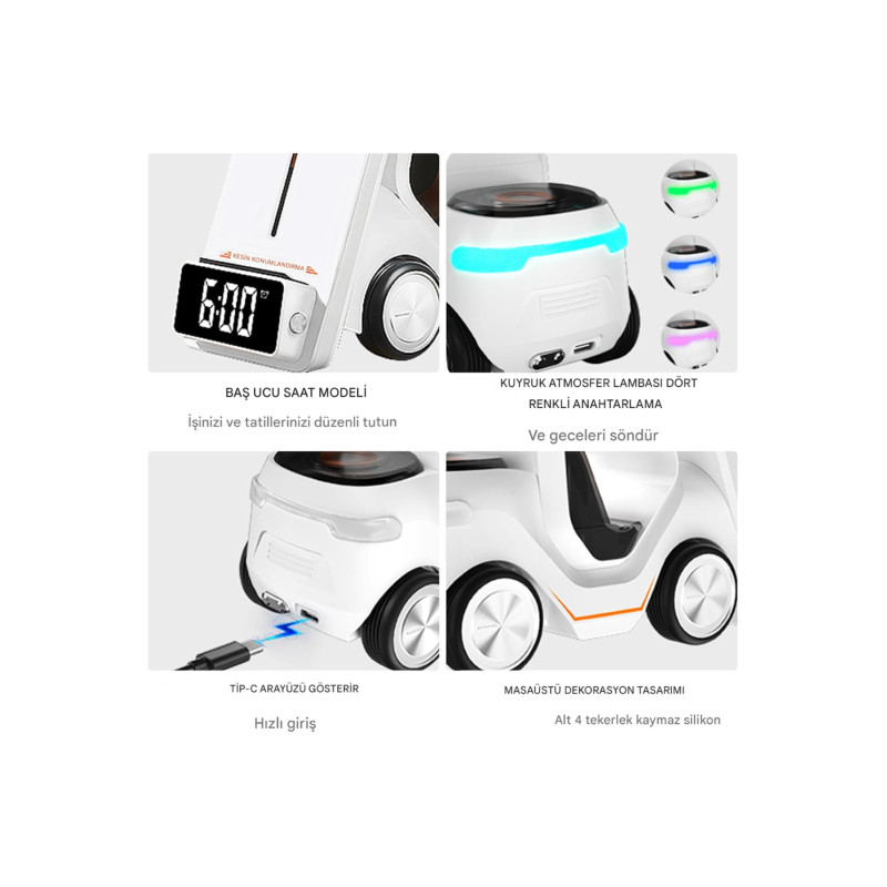 Benzersiz ve Eğlenceli Tasarım: Klasik şarj standlarını unutun! Sevimli araç şeklindeki tasarımıyla hem bir şarj istasyonu hem de masaüstünüz için modern bir dekorasyon parçasıdır.