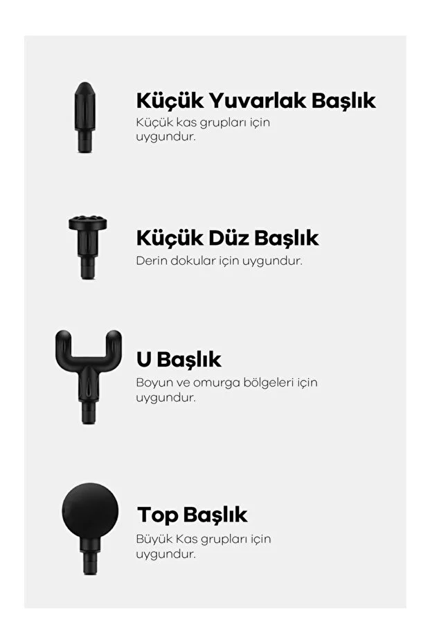- Top (Yuvarlak) Başlık: Genel vücut ve büyük kas grupları (kol, bacak, kalça) için.