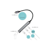 Type-C To USB 4 Ports Hub, çeşitli çevre birimlerini bağlamanızı sağlar. 1 x USB 3.0 bağlantı noktası ve 3 x USB 2.0 bağlantı noktası ile hızlı veri aktarımı yapabilir ve farklı cihazları aynı anda kullanabilirsiniz. Metal gövdesi sayesinde dayanıklı ve uzun ömürlüdür. Küçük boyutu ile taşınabilirliği kolaydır, bu da hareket halindeyken bile kullanım imkanı sunar.