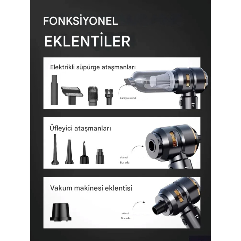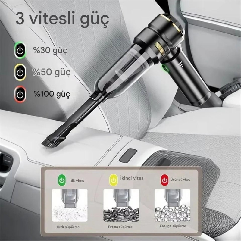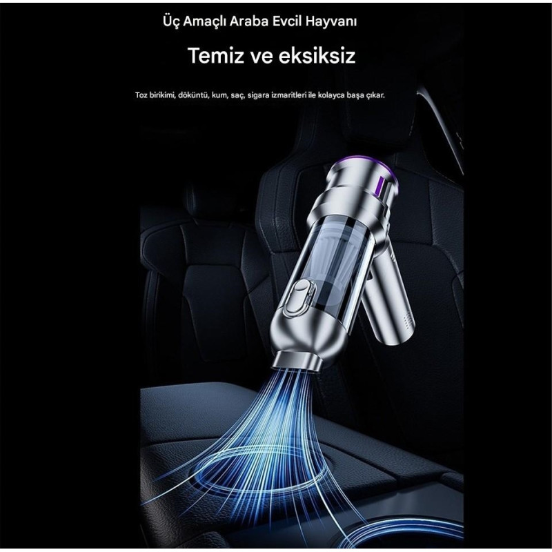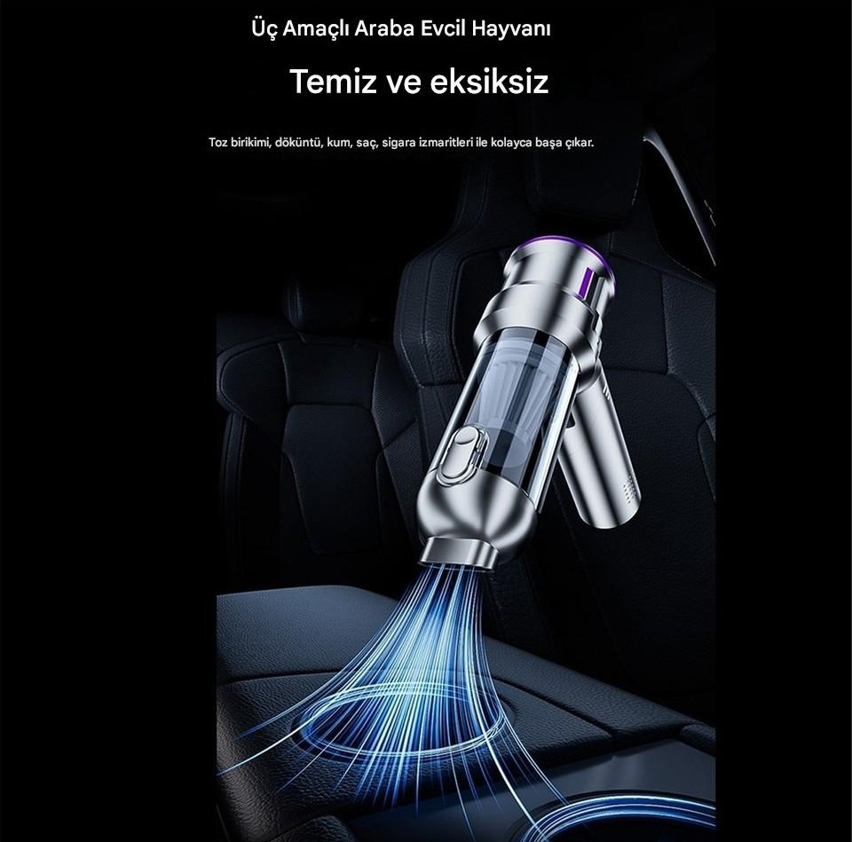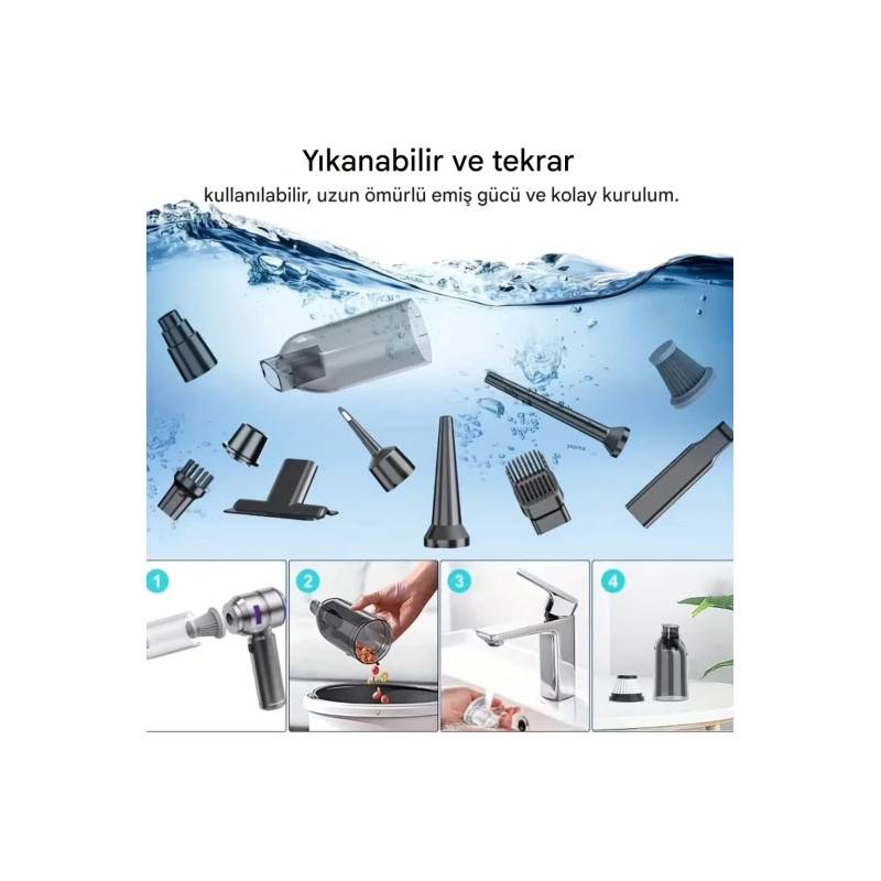 Vakum (Süpürme): Araç koltukları, döşemeler ve klavye temizliği için yüksek emiş.