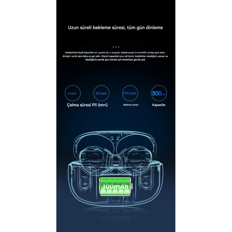 - Bekleme Süresi: Şarj Kutusu ile Birlikte 100 Saat Ultra Uzun Bekleme Süresi.