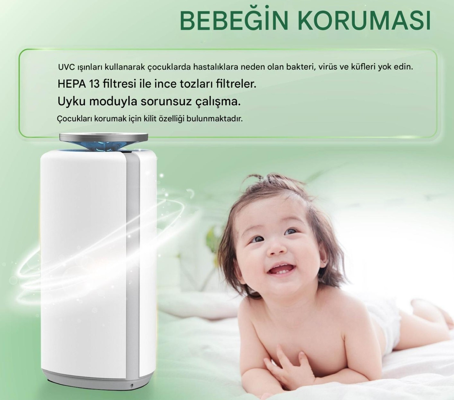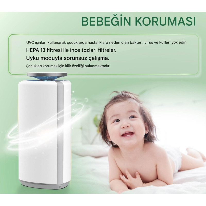 Bu cihazın en güçlü yanı filtrasyon sistemidir. Sıradan hava temizleyicilerin aksine, sadece filtre kağıdına güvenmez, mikropları öldürmek için ışık ve iyon teknolojisi de kullanır.