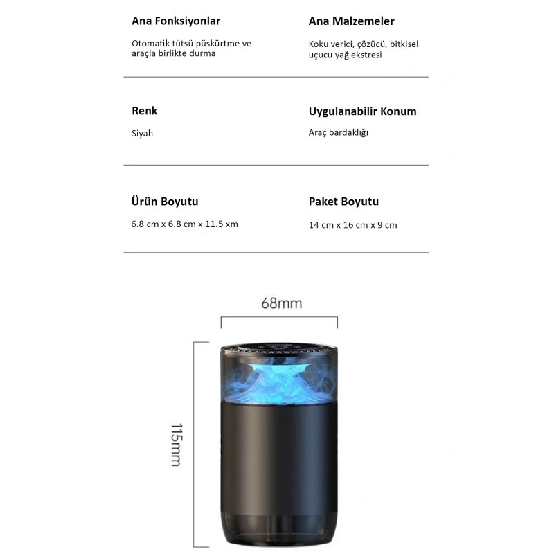 8ml hacimli bu akıllı hava soğutucusu, dayanıklı plastik ve sağlam alaşımdan yapılmıştır ve 115mm yükseklik ve 68mm genişlikte, aracınızın iç mekanına rahat bir şekilde sığar.