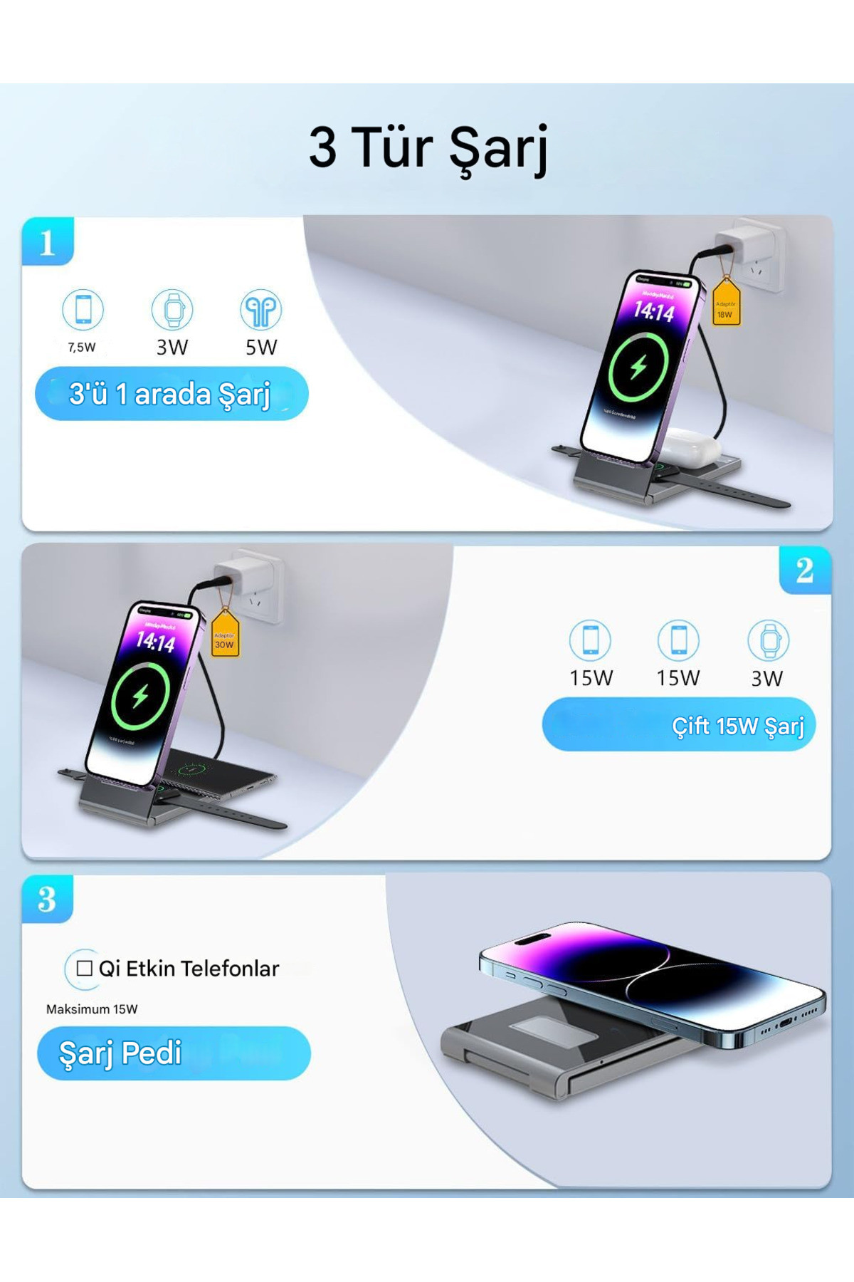 3'ü 1 Arada Katlanabilir Hızlı Kablosuz Şarj İstasyonu: Kablo Karmaşasına Son!