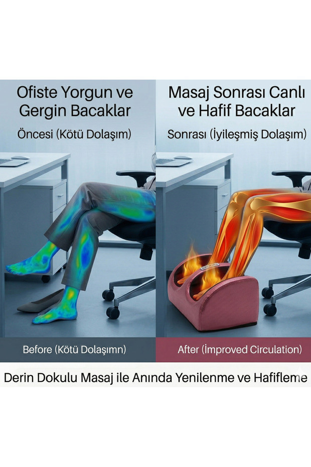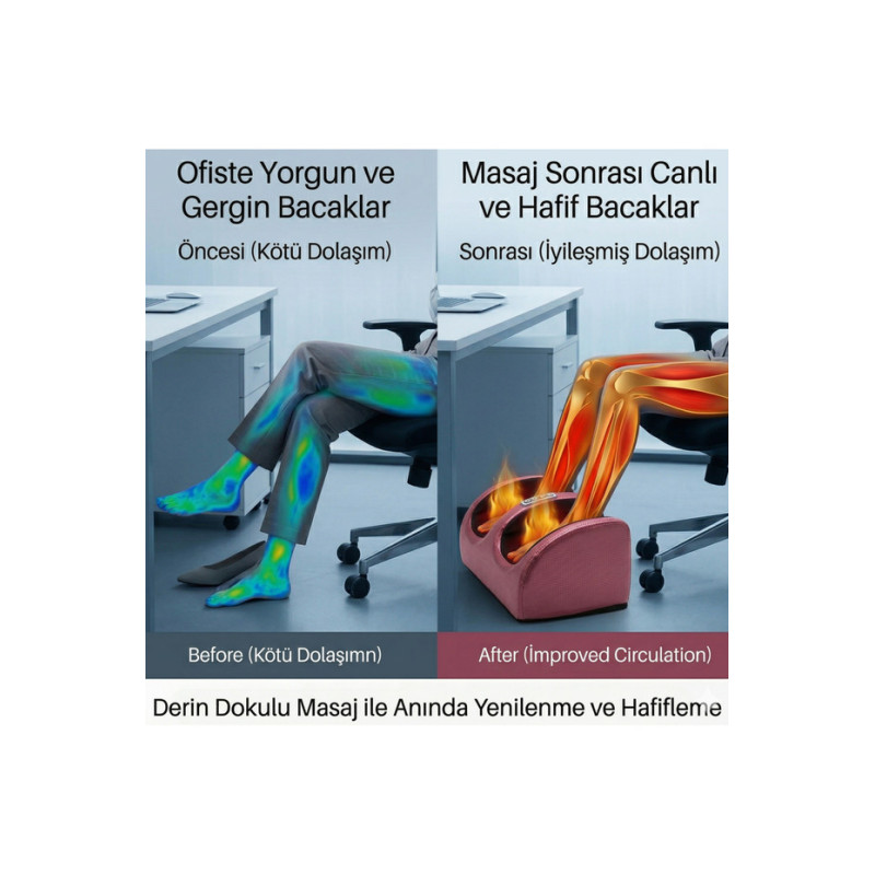 Ayaklar, vücudun tüm yükünü taşıyan ve "ikinci kalp" olarak adlandırılan bölgelerdir. Cihazımız, ayak tabanındaki sinir uçlarını uyararak sadece ayaklarınızı değil, tüm sinir sisteminizi rahatlatmaya yardımcı olur. Görsellerdeki Isı Haritası Analizi, cihazın düzenli kullanımda "Kötü Dolaşım" (mavi bölgeler) kaynaklı soğukluk ve uyuşmaları, "İyileşmiş Dolaşım" (kırmızı/turuncu bölgeler) seviyesine nasıl taşıdığını kanıtlamaktadır.