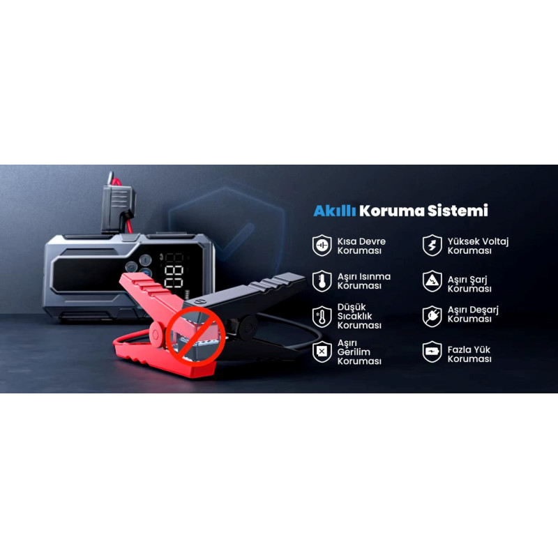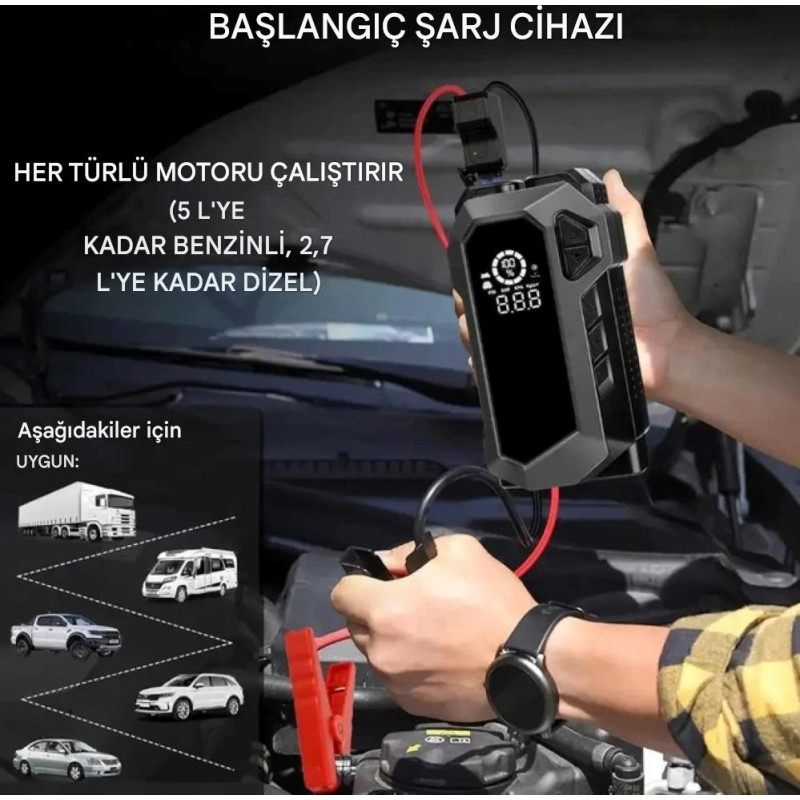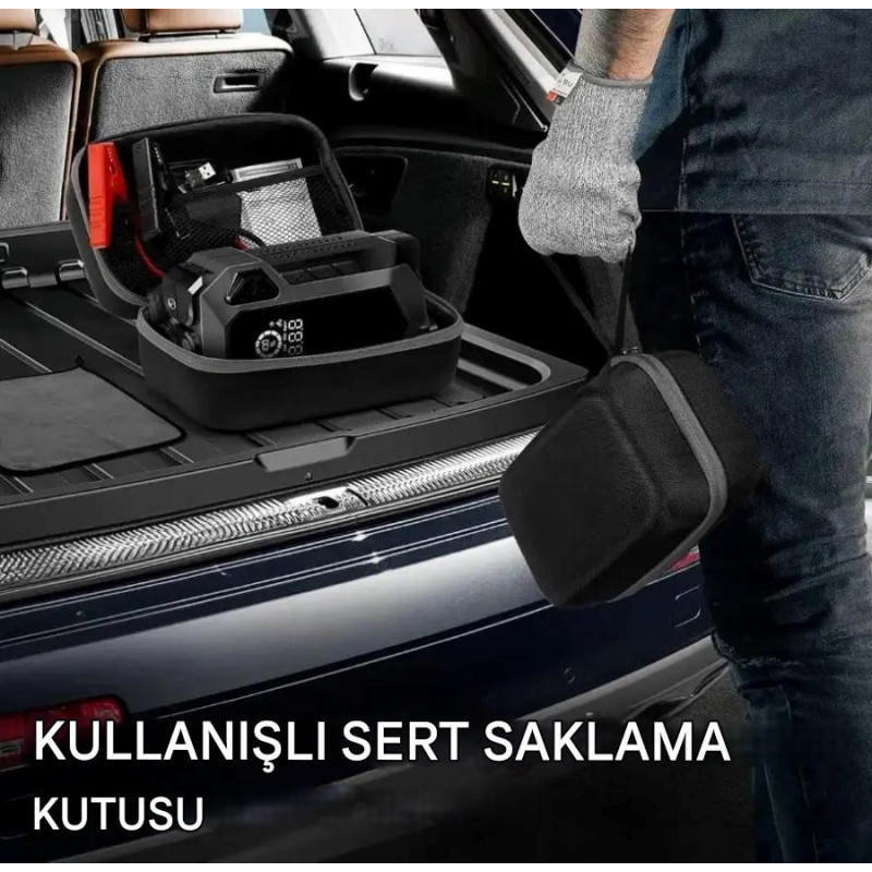 Yolculuklarınızda tam güvenlik, maksimum güç! aracınızın bagajındaki en değerli ekipman olmak için tasarlandı. Sadece bir takviye cihazı değil; bir kompresör, dev bir güç bankası ve profesyonel bir aydınlatma sistemidir.