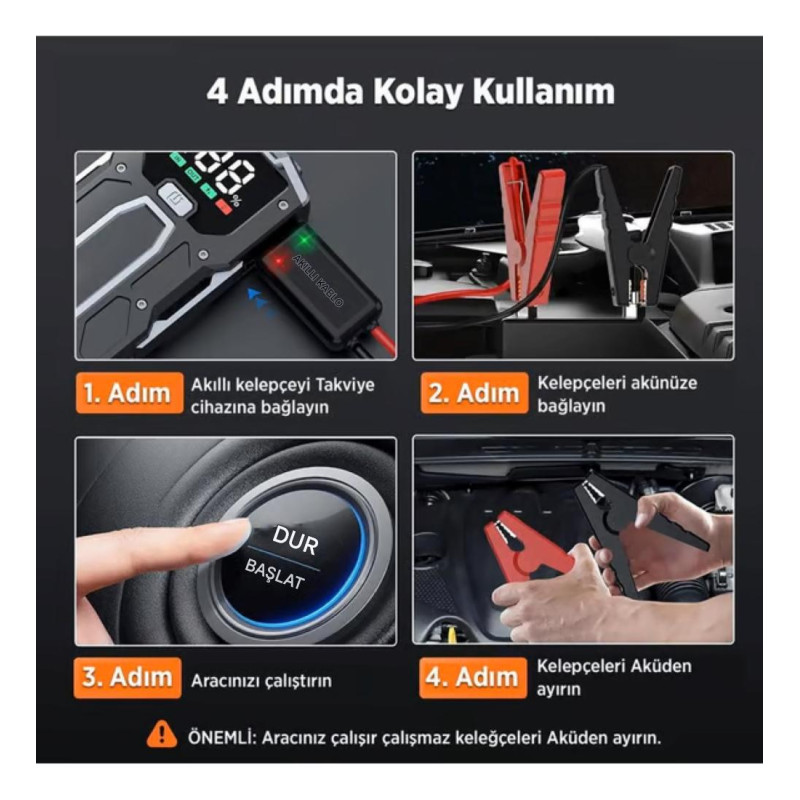 24V Uyarısı: Bu cihaz sadece 12V araçlar içindir. Kamyon veya tır gibi 24V sistemlerde asla denemeyin.